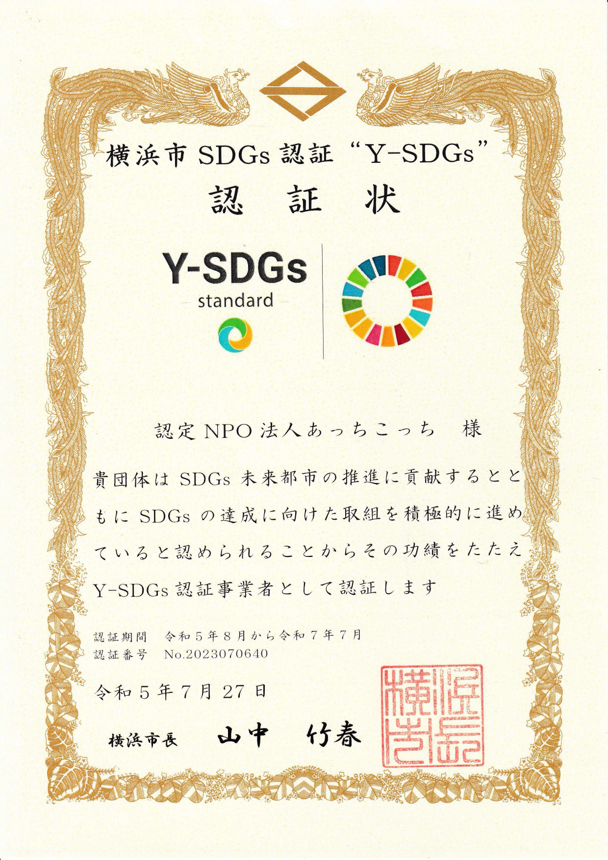 横浜市より”Y-SDGs”認証事業者として認証されました。詳細は