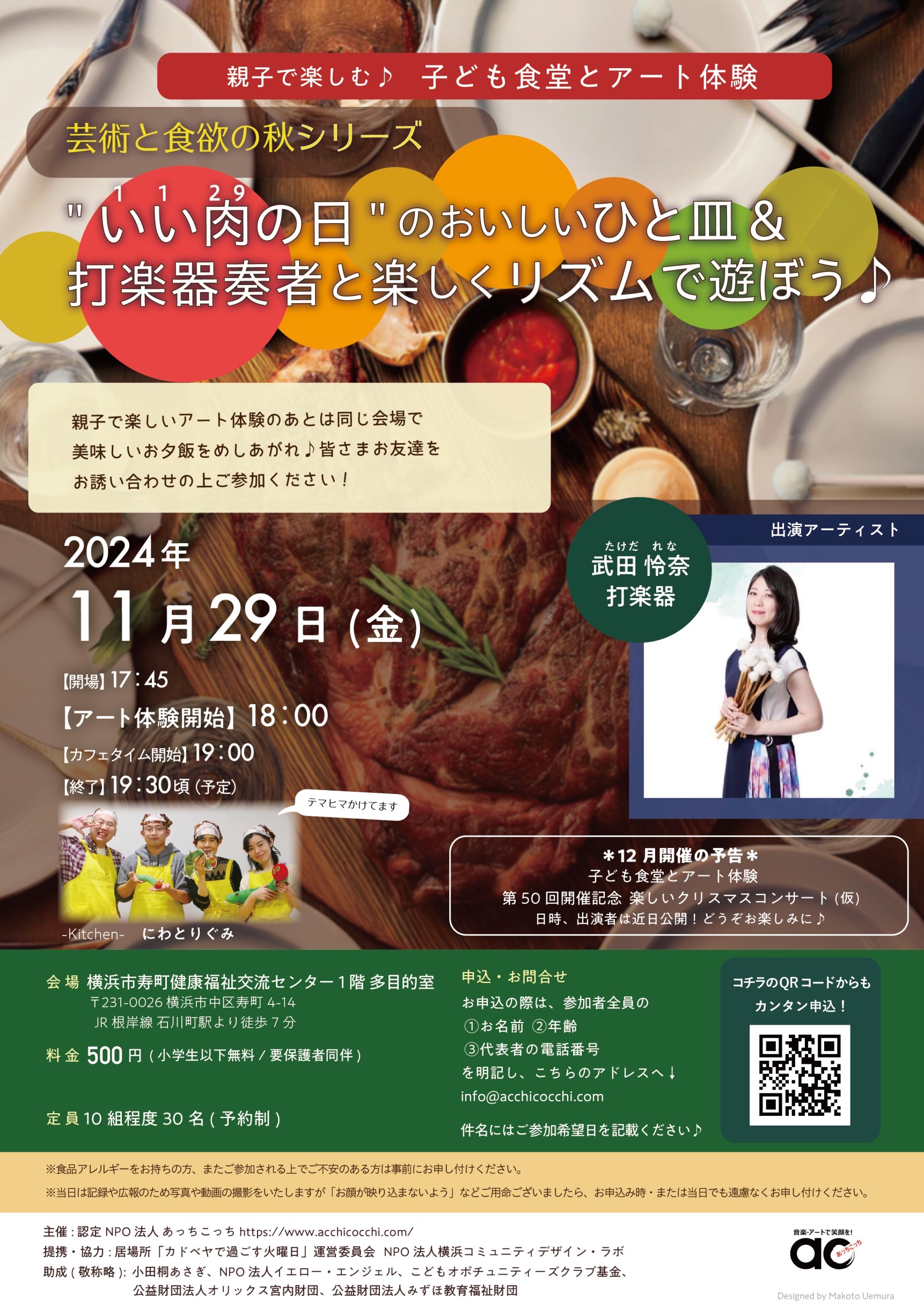 11月29日(金)”いい肉の日”18時〜子ども食堂とアート体験🍁@寿町健康福祉交流センター
