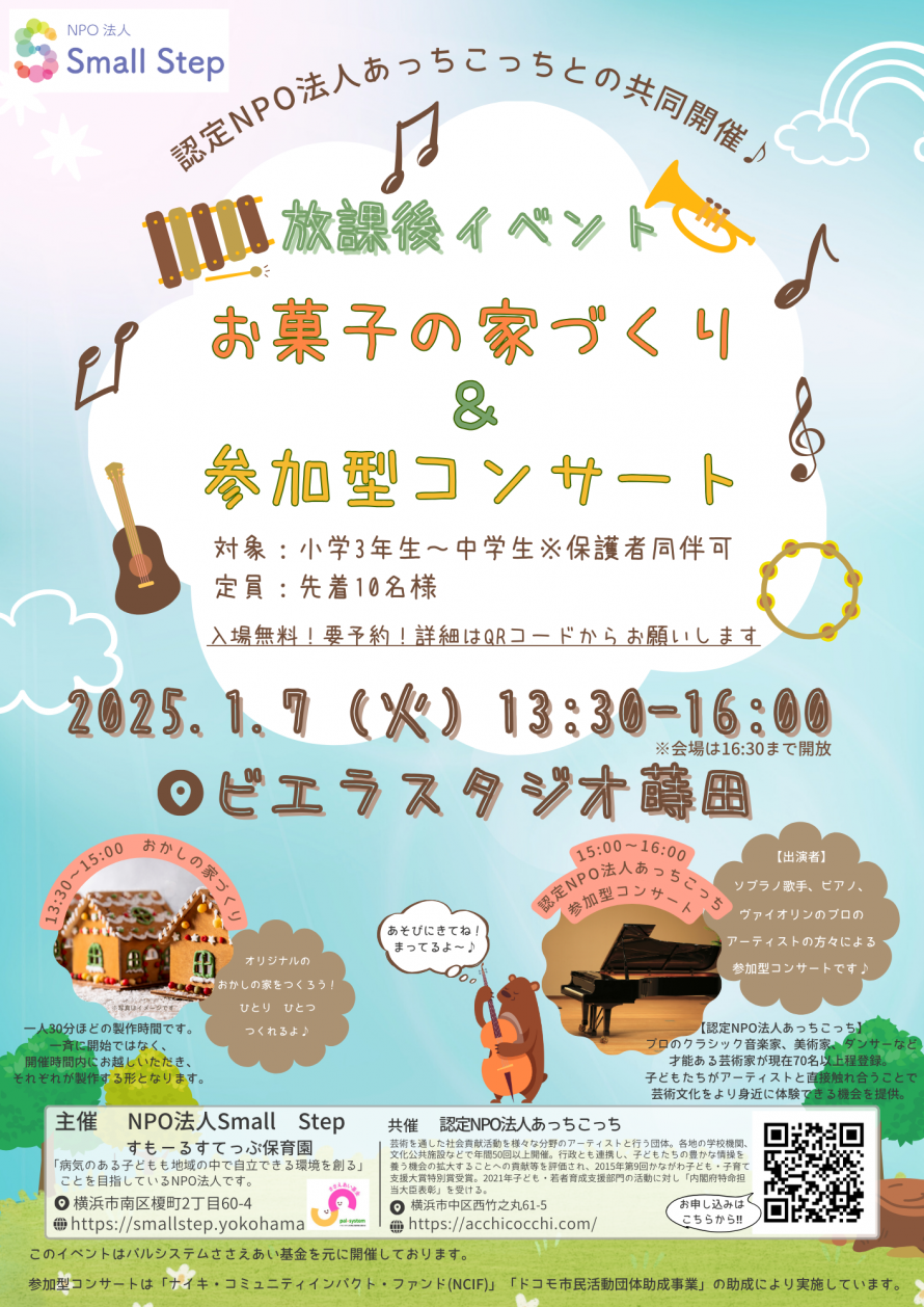 1/7(火) こどもホスピス芸術学校~共催企画・おかしの家をつくろう&参加型コンサートwith NPO法人 Small Step